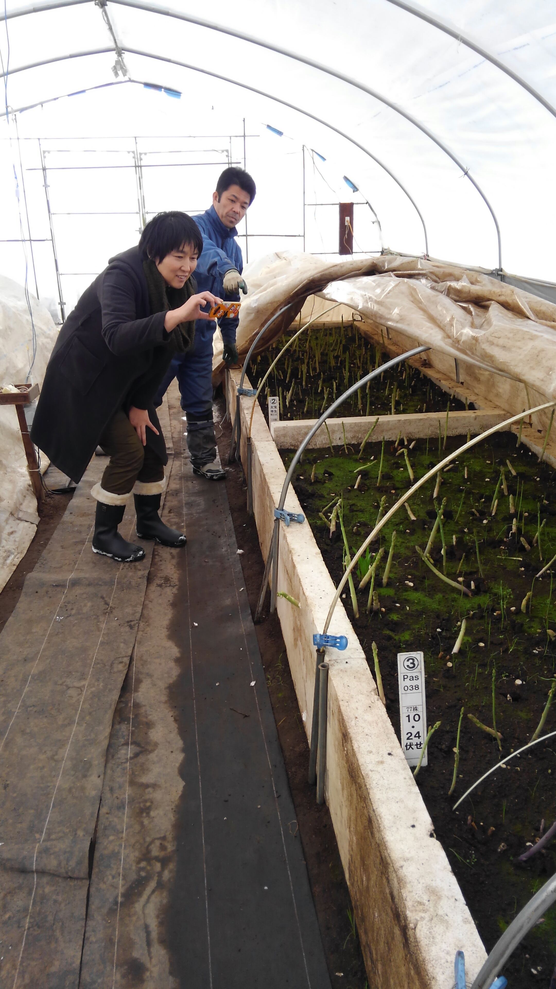 美幌町の牛来主査は遮光ビニールハウスでの栽培の研究を進めてきました。遮光ハウス栽培のホワイトアスパラは、盛り土栽培のものと比較するとえぐみがなくスッキリした味だと言われます。